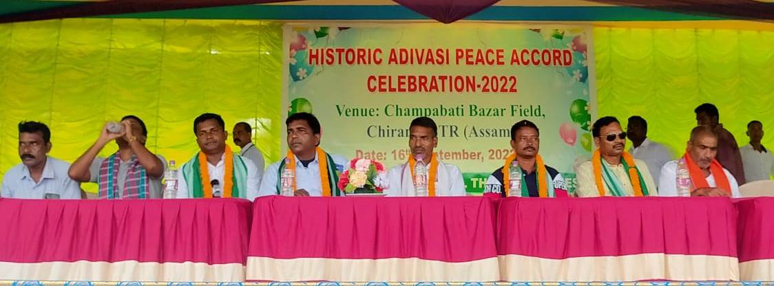 Chirang, September 16: The historic agreement ended on September 15 to meet the long-standing demands of adivasis. No ethnic group should be afraid of the historic agreement with eight armed organizations of the backward and oppressed tribal community. Akma chairman Jabrias Khakha alias Asim Hasda said that the agreement without causing any harm to any ethnic group will contribute to the creation of a greater Assam. He thanked the Prime Minister of India, the Home Minister and the Chief Minister of Assam for taking the lead in the historic Tribal Agreement. The agreement will fulfill a lot of aspirations of the adivasis though tribalisation is the main demand of the adivasis. The demand for tribalisation will be fulfilled one day in a phased manner. Expressing this hope, Akma Deputy Chief of Army Staff Chunda Hasda, BCF Chairman Tirku Tudu and UPPER Chairman Mangal Hasda thanked the Prime Minister of India Narendra Modi, Union Home Minister Amit Shah and the Chief Minister of the state Dr. Himanta Biswa Sarma. The reception ceremony held at Champavati Bazar ground under Sidli police station of Chirang district arrived much later than the scheduled time but in the midst of utmost enthusiasm, the tribal culture group welcomed the signatories of the agreement with dance and song. Various party leaders and workers of Adivasis were present on the occasion.